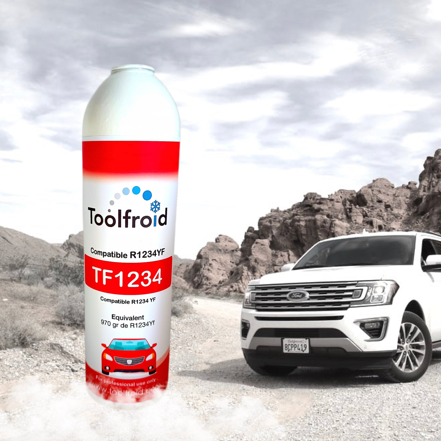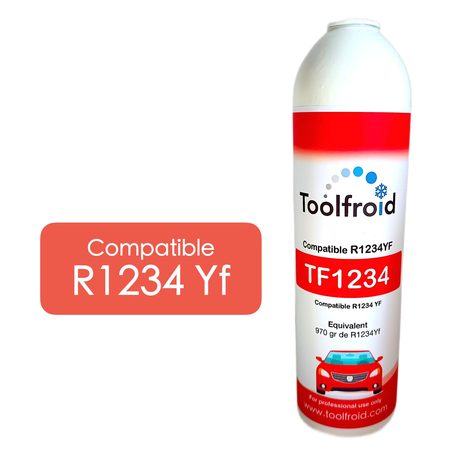 Le réfrigérant TF1234 est un substitut donc garanti pour tous les véhicules fonctionnant au R1234Yf. Notre gaz TOOLFROID TF1234 contient Gr de réfrigérant, peut recharger environ 2 véhicules.